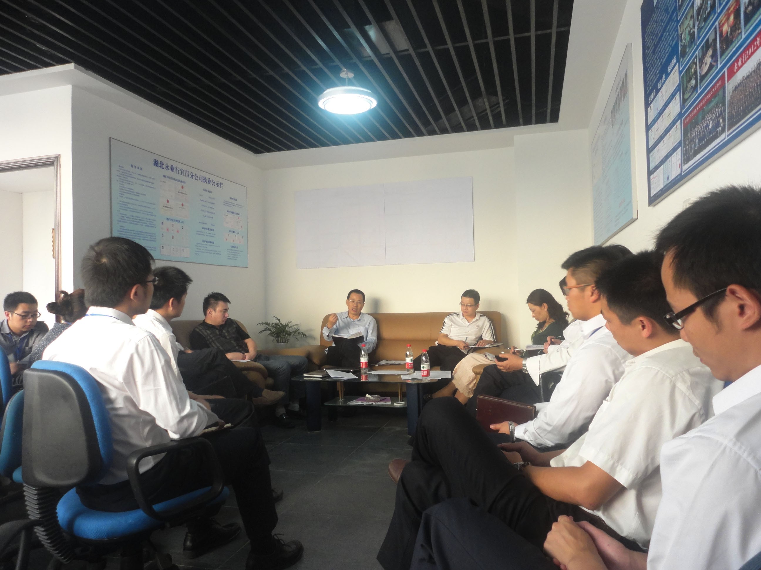 2013年10月9日,潘世炳莅临鄂西南区域分部调研座谈 2013-10-09 10月9日,总裁潘世炳率综合部负责人杨雪莲、人力资源部负责人杨乐及技术部助理总经理汪蓓蓓等赴鄂西南区域分部调研座谈。 调研中,鄂西南区域分部负责人白继军、恩施分部负责人雷小明分别作了市场业务分析及工作汇报,鄂西南区域分部员工就分部管理、市场拓展、技术管理、业务合作及工作中遇到的问题等内容与潘总等一起座谈交流,并提出了一些好的建议。潘总肯定了鄂西南区域分部取得的成绩,对该分部员工提出的问题进行了现场解答,并鼓励大家主动发现问题、解决问题,勇于创新。此外,他还对鄂西南区域分部的发展提出了新的希望和要求。综合部负责人杨雪莲、人力资源部负责人杨乐与该分部员工一起学习了综合管理 MORE