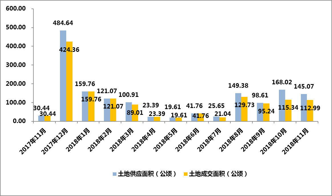 2018年11月,武汉市土地供应量环比下降13.66%,土地成交量环比下降2.04% 。
