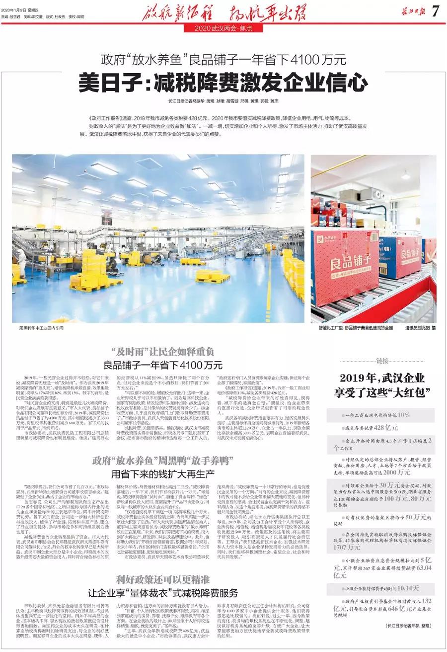 1月6日,王琴在接受长江日报记者关于惠企惠民政策采访时表示,2019年,永业行及员工合计享受个人所得税、企业所得税、增值税、增值税附加税及印花税等各类税收优惠近500万元。政策惠及的这笔钱,将主要用于研发投入、吸引高素质人才以及履行社会责任等。王琴说,我们是高新技术企业,加强技术研发和人力资本投入是企业保持发展活力的必然选择。同时,我们也将积极回馈社会,希望企业、社会和时代共同发展。