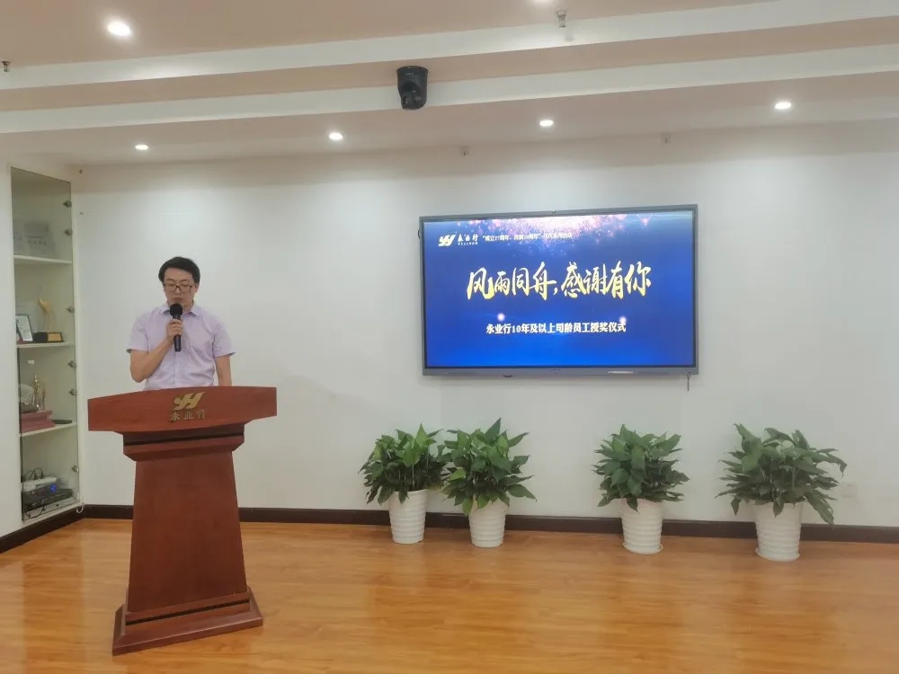 潘世炳在致辞中回顾了永业行从改制创立到发展壮大的历程,从改制之初的8个人到现今的1100余人;从武汉起步,拓展湖北,征战北京、贵州、海南、安徽等20余个省市,服务地域覆盖全国;从单一的土地评估到价值评估咨询、自然资源咨询、投资咨询、生态环境咨询等四大业务板块,实现了多专业融合发展,成为勇担社会责任的品牌企业,并代表公司董事会向为公司发展付出艰辛劳动的全体员工及家属致以崇高的敬意和衷心的感谢!他强调了永业行的战略方向,勉励受表彰人员珍惜司龄荣誉,永葆奋斗本色,继续弘扬创新改革的光荣传统和敢于争先的优良作风,不断深化业务创新、管理创新、结构创新,继续为实现“大后方、大中台”的管理战略目标做出新的贡献。