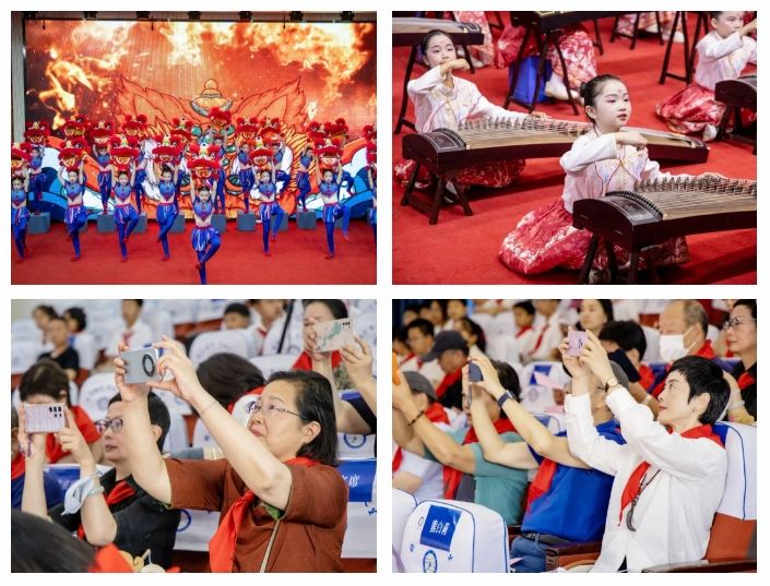 伴着热情的掌声,武汉市妇女事业发展促进会和经开区教育局的领导们步入新城小学,学校六年级优秀毕业生为嘉宾佩戴鲜艳的红领巾。走进新城小学,已感受到浓浓的节日氛围,教学楼前,扎染展区、美术展区展出了孩子们动手创作的工艺品,美术展区内,书法社的师生现场创作折扇;舞台上,古筝表演《少年中国说》《采菊东篱下》、舞蹈表演《AI里的传承》等表演精彩纷呈。