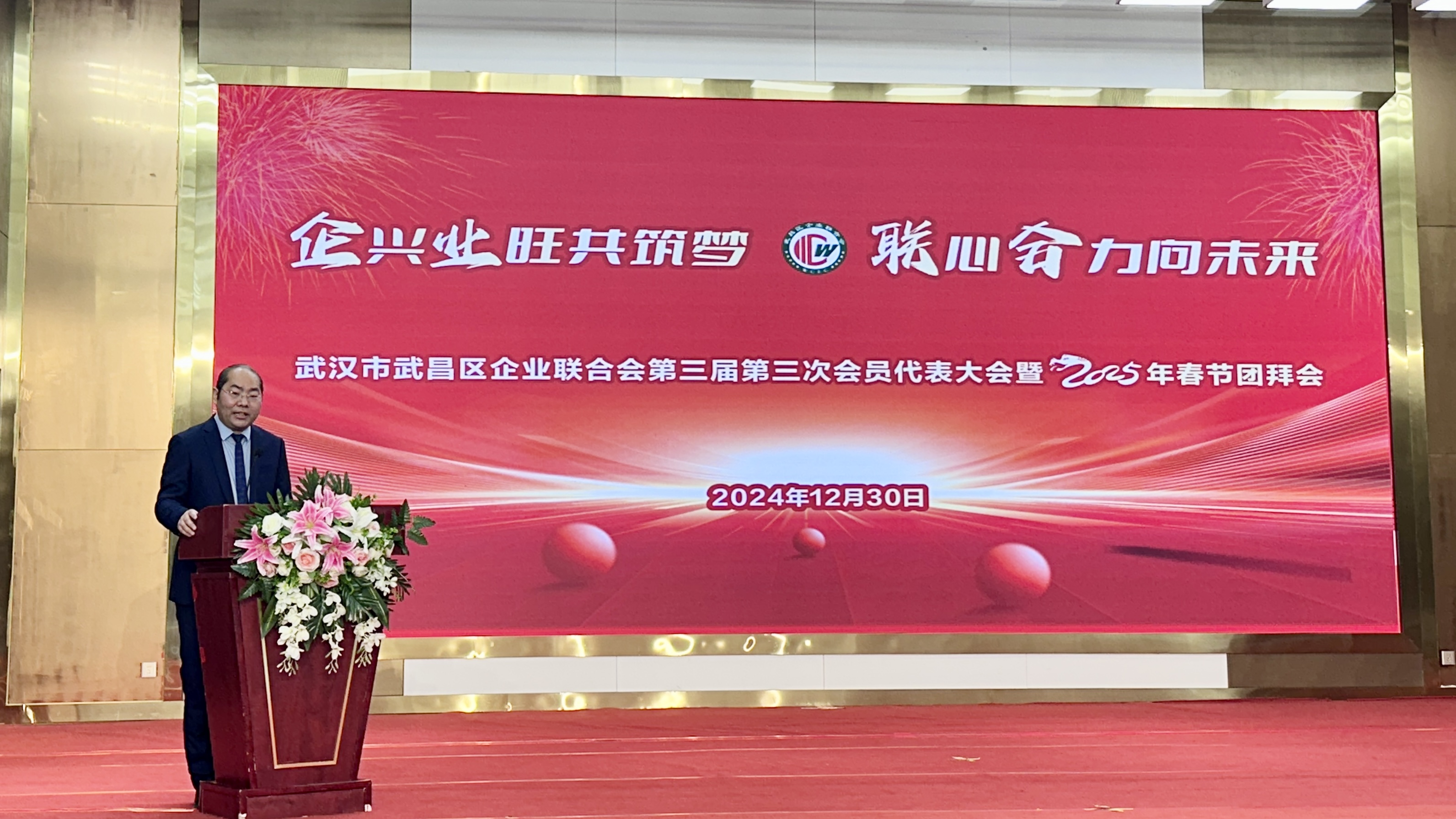 高义琼首先向与会人员致以新年祝福,对武昌企联2024年的工作给予充分肯定。他表示,新的一年,武昌企联要继续搭建交流合作平台,充分发挥桥梁纽带作用,为企业与政府、企业与企业之间搭建更加便捷、高效的沟通交流平台,推动企业之间互利共赢、共同发展;要推动转型升级发展,鼓励和支持会员企业加大技术创新和研发投入,为武昌区经济发展注入新的活力。最后,他衷心祝愿武昌区经济社会发展取得新的更大成就!