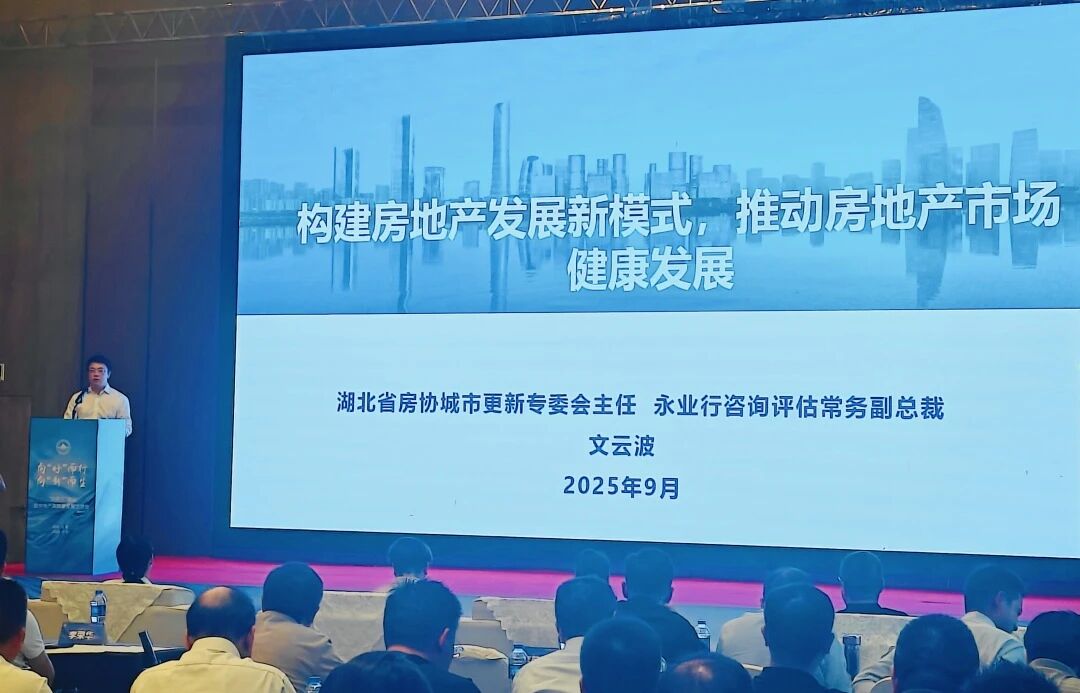 2025年9月8日,十堰市房地产开发企业协会(以下简称“十堰市房协”)组织举办“好房子”建设暨房地产高质量发展交流会,副市长杨亚军出席会议并致辞。永业行常务副总裁文云波受邀作“构建房地产发展新模式,推动房地产市场健康发展”主题演讲。